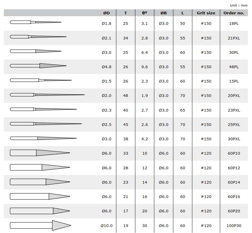 * All of our diamond and CBN mounted points can be customized according to your needs.