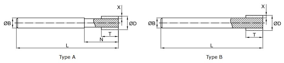 * Mũi mài Vitrified CBN dùng để mài lỗ trên vật liệu thép hợp kim có độ cứng cao. (Mài ướt)