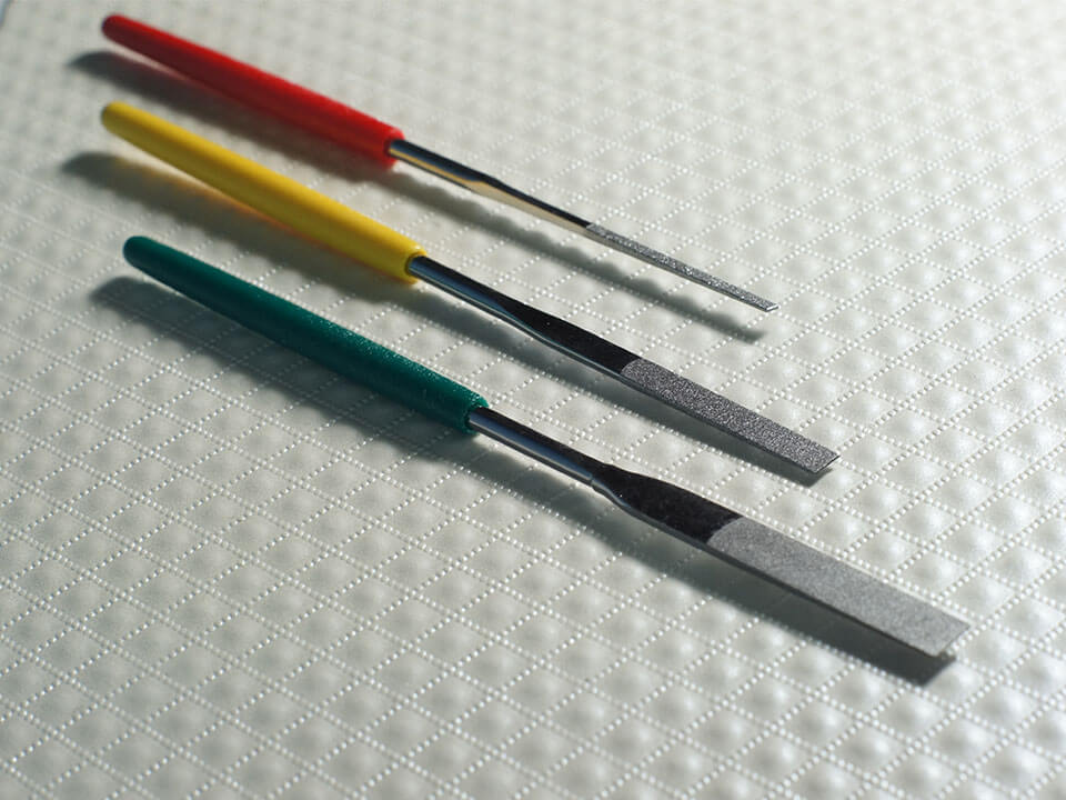 - Dũa kim cương được sử dụng để gia công và loại bỏ bavia trong các khe hẹp. - Tổng chiều dài: 130 ~ 140mm - Chiều dài lớp phủ kim cương: 30 ~ 50mm