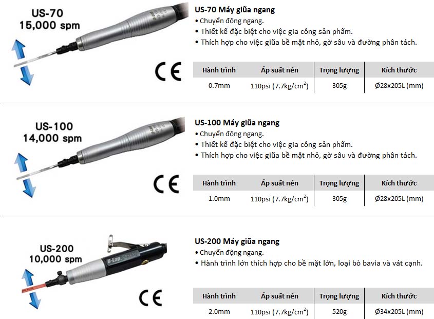 Máy mài và máy giũa dùng hơi / Máy giũa ngang dùng khí nén