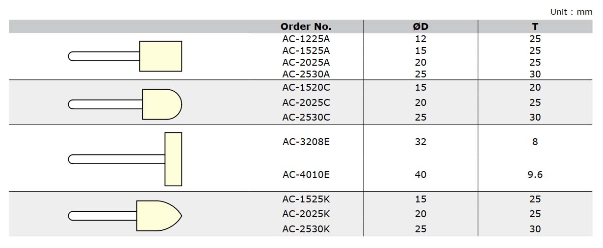 Đầu nỉ đánh bóng dòng AC: đường kính trục ø6.0mm