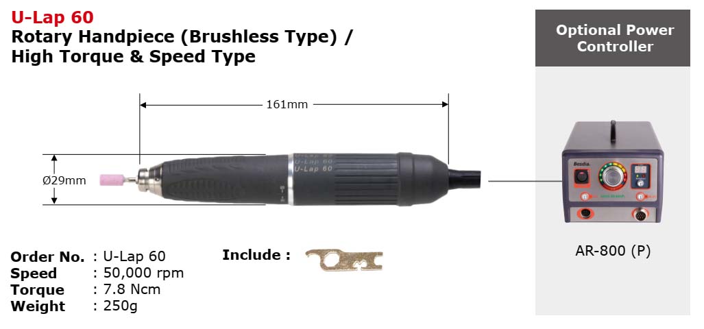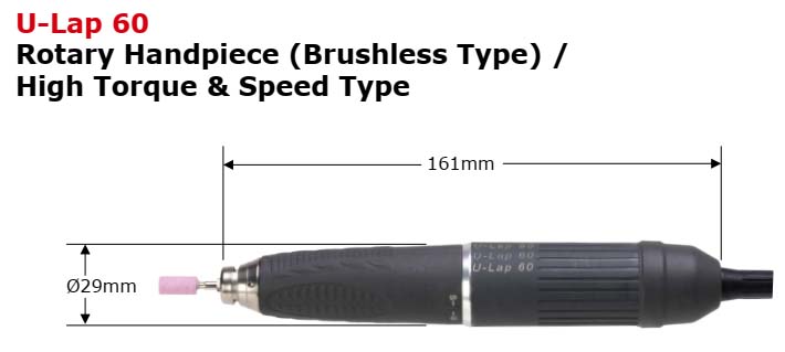 Đầu kẹp tay mài U-Lap 60 có thể thay thế: tiêu chuẩn là Ø3.0 mm, các loại đầu kẹp Ø2.34 mm và Ø3.175 mm là tùy chọn.
